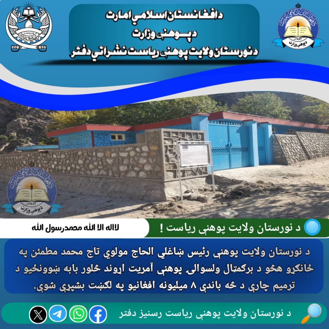به سعی و تلاش ویژه رئیس معارف ولایت نورستان، الحاج مولوی تاج محمد مطمئن، کار ترمیم چهار مکتب مربوط آمریت معارف ولسوالی برگمټال (مکاتب اولهگل، نیکمک، بدنشاه و پڅیگرام) با حمایت مالی یکی از نهادهای همکار تکمیل و طی مراسم ویژهای به بهرهبرداری سپرده شد.