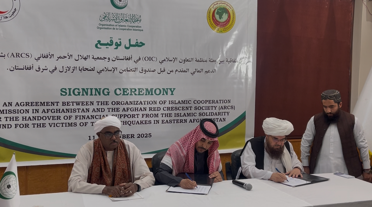 زلزله زون شرق؛ سازمان همکاریهای اسلامی مبلغ ۱۰۰ هزار دالر امریکایی کمک نقدی را به هلالاحمر افغانی سپرد