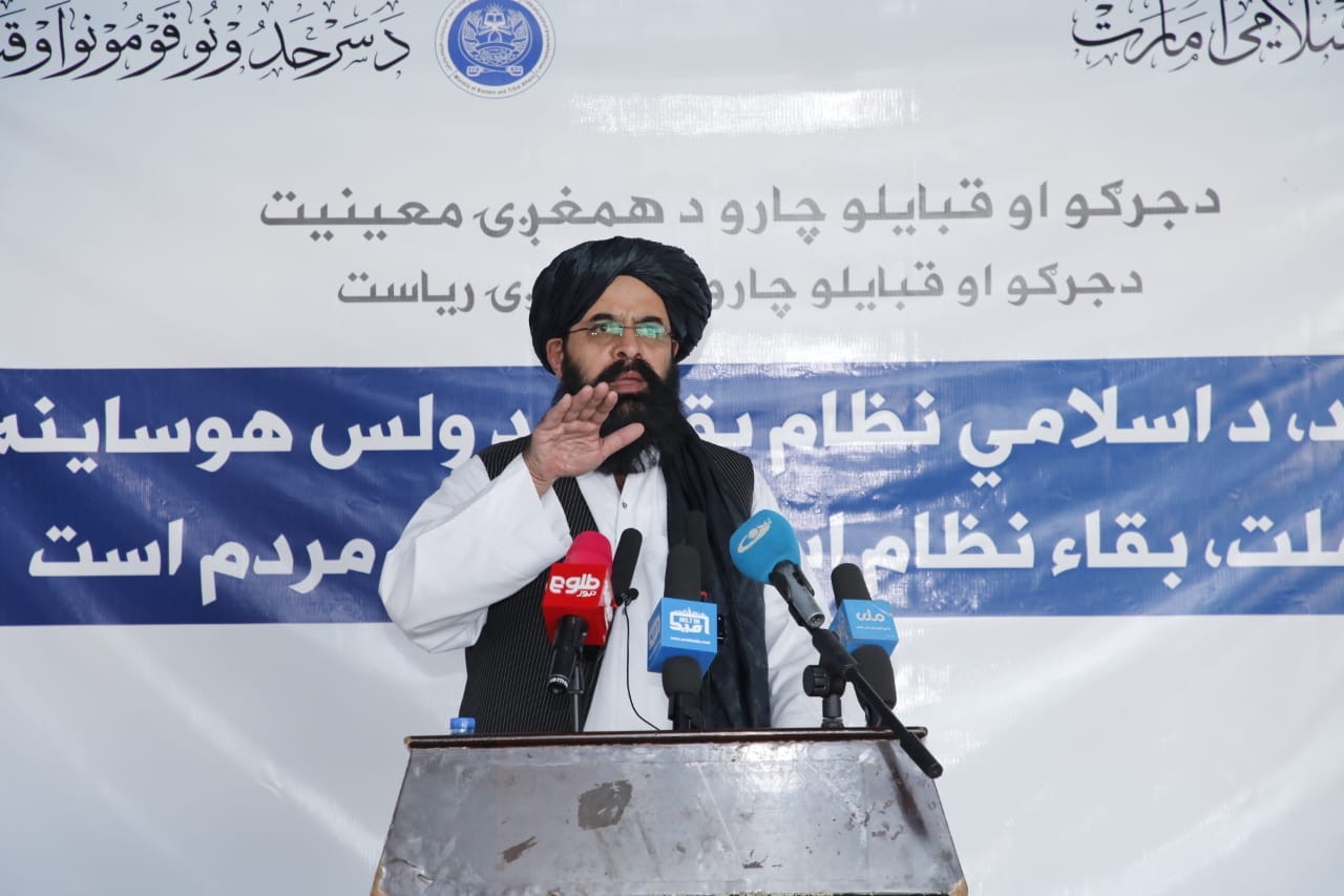 سپس معاون هماهنگی امور جرگهها و قبایل، آقای احمد، سخن گفت و اظهار داشت: افغانها برای عزت و آزادی ملت خود در برابر اشغالگران مبارزهای بینظیر انجام دادند و سرهایشان را فدا کردند. وی افزود: هدف بزرگ میلیونها شهید ما همین بود که قانون ربالعزت در این سرزمین اجرا شود تا نور آن در سراسر جهان منتشر گردد.